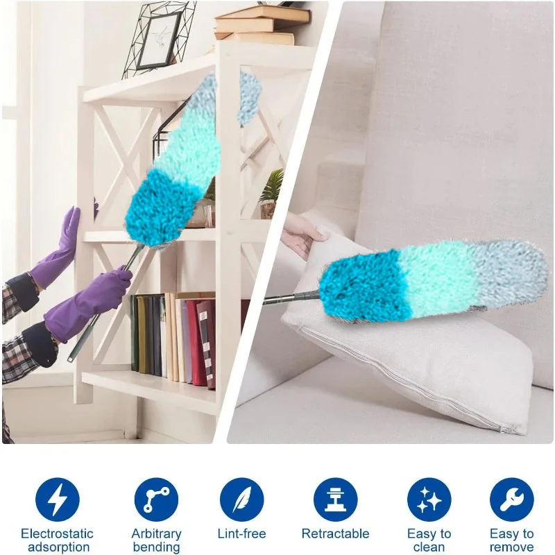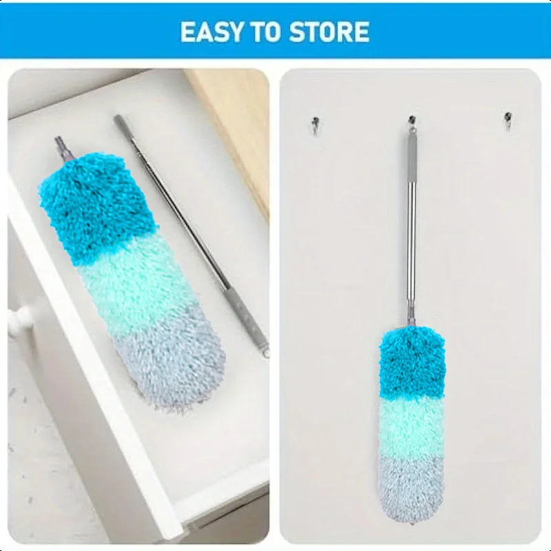 Dusting wardrobe tops or door frames: retractable handle for easy storage; multi-head replacement works on different surfaces, boosting efficiency.