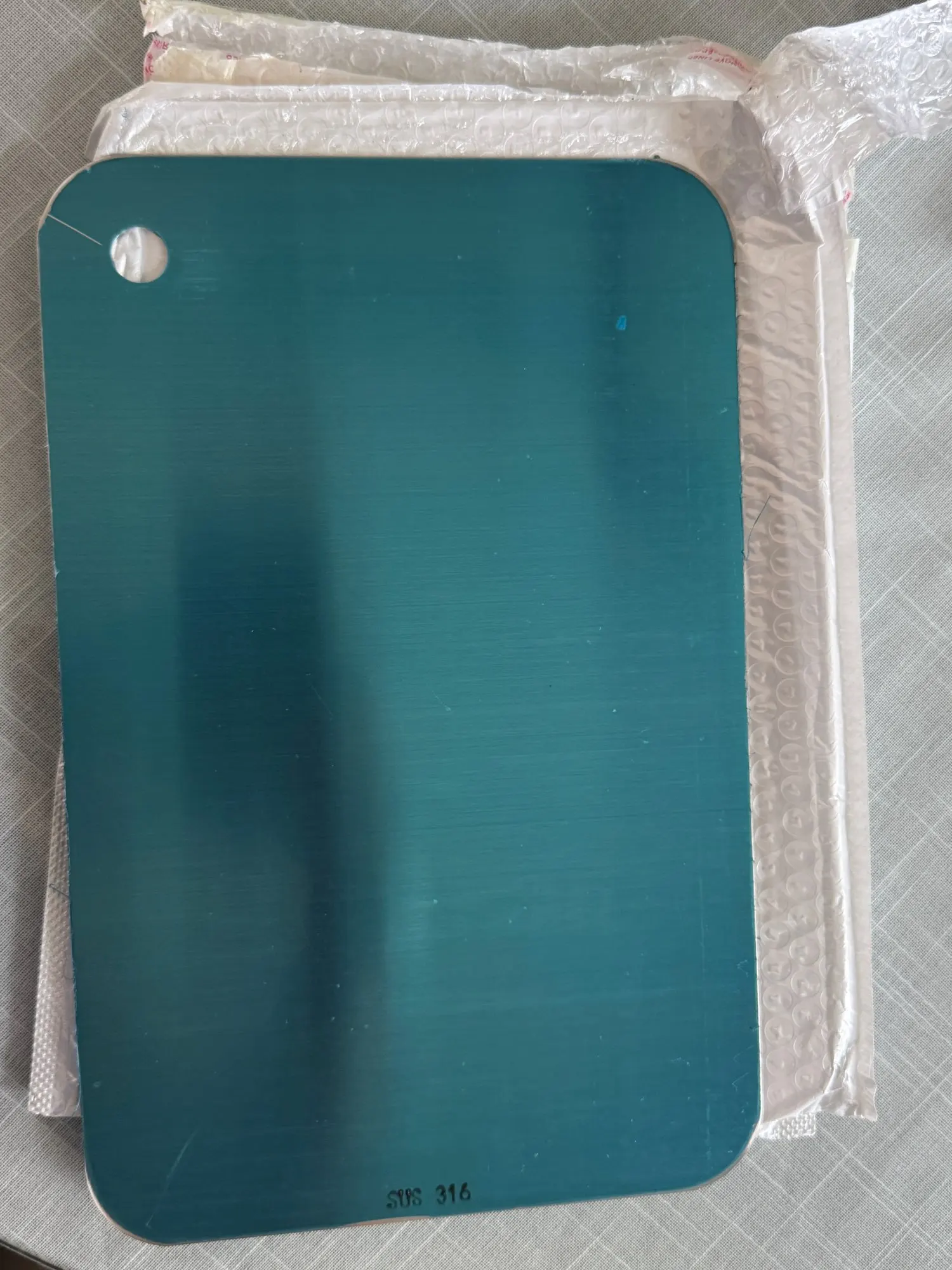 Cutting board received in good order. Looks good. Finishing could be better especially at the edges, more smooth. It’s firm and strong. Hopefully it’s titanium and not bs.